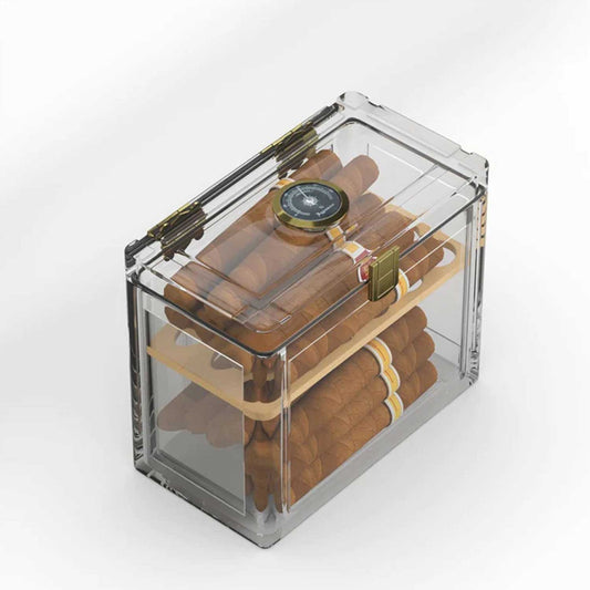 Acrylic Cigar Humidor with Humidifier and Hygrometer