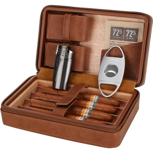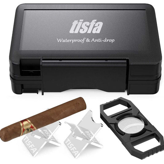 Cigar Travel Humidor Case with Cigar Cutter and Cigar Stand