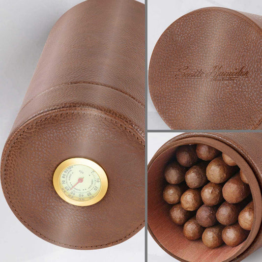 Leather Cedar Wood Cigar Canister Portable for 12-16 Cigar
