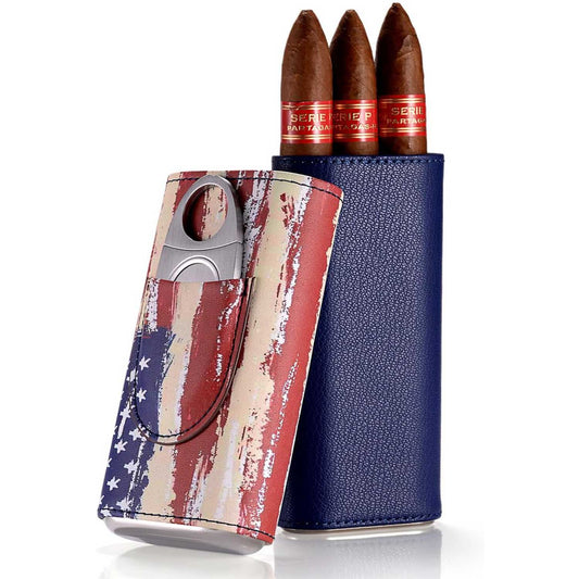 Premium 3 - Finger Flag Pattern Leather Cigar Humidor