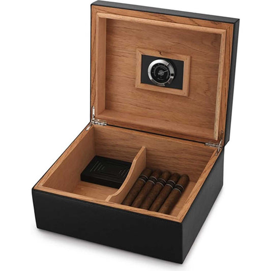 Desktop Humidor Case Holds 25-50 Cigars - Unique Elegant Leather Display